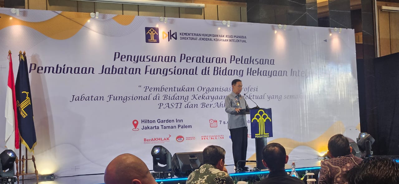 Kegiatan yang berlangsung di Hotel Hilton Garden Inn Pohon Palem Jakarta Barat mengambil tema “pembentukan organisasi profesi jabatan fungsional dibidang kekayaan intelektual yang semakin pasti dan berakhlak”
